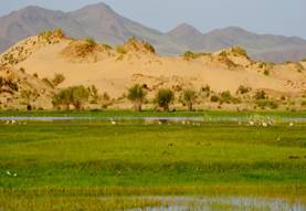 The rocky massif rising above the dunes creates a surreal atmosphere. It is a superb place for hiking, and with some luck, visitors can observe wildlife such as deer, ibex, and a wide variety of birds.